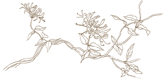 Twisting trails of akebia quinata and dried alchelmilla mollis flowers