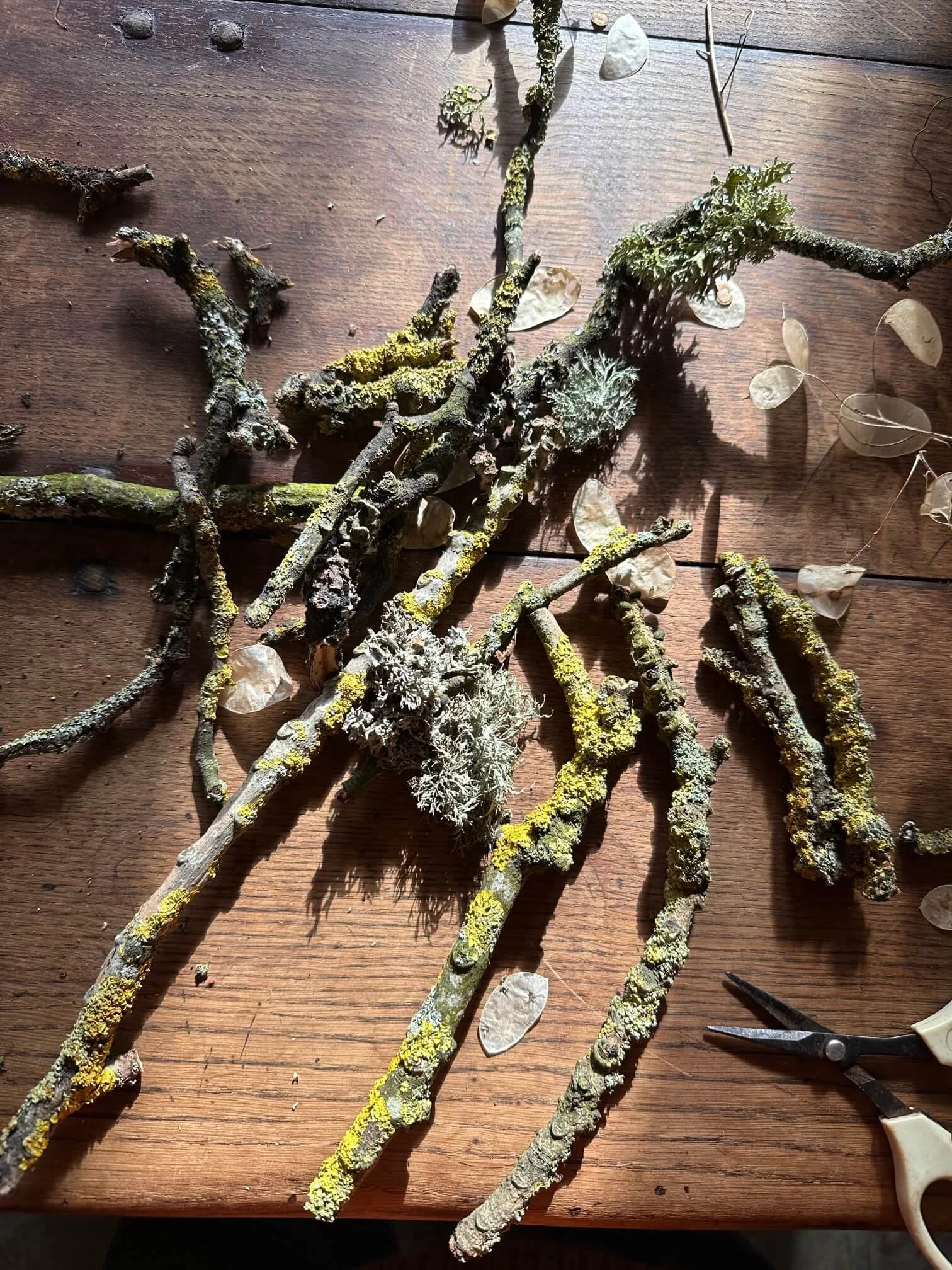 During my mid-winter dog walks I collected fallen lichen and branches, honing in on the most ‘licheny’ or interesting shapes.